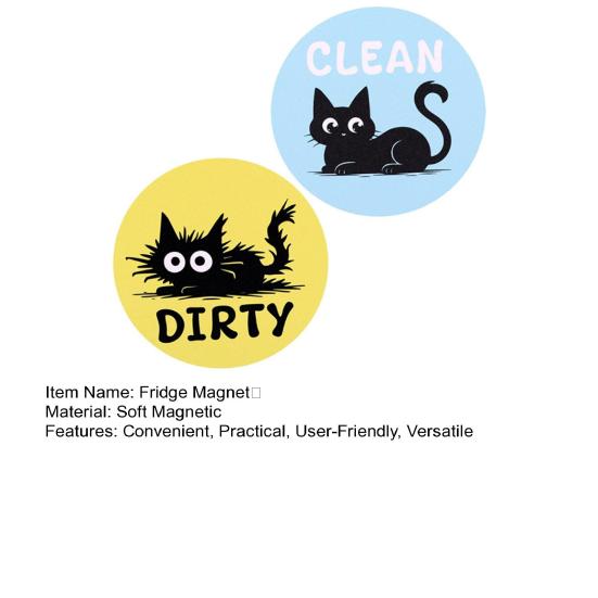 Убедитесь, что ваша посуда всегда чистая, с этим набором магнитных индикаторов для посудомоечной машины Чисто/Грязно. Эти магниты с забавным кошачьим дизайном и четким, жирным шрифтом легко читать и удобно использовать.. Полноразмерный мягкий магнит на задней стороне надежно крепится к любой магнитной поверхности, не оставляя следов..