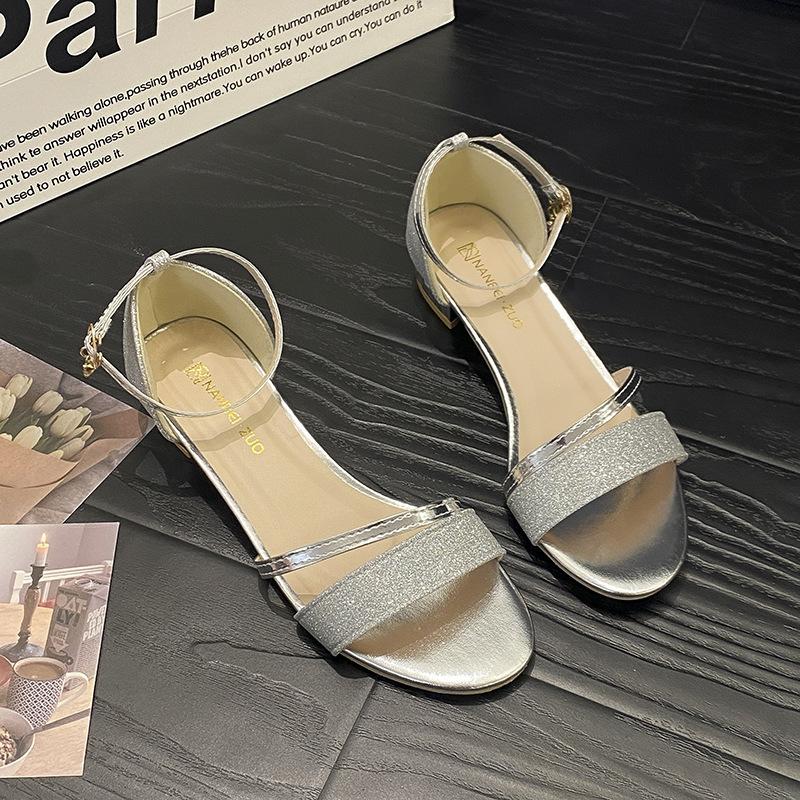 2025 лето новые сандалии женские модные студенческие сумка каблук пряжка на одно слово интернет-знаменитость большой размер сандалии на плоской подошве женские