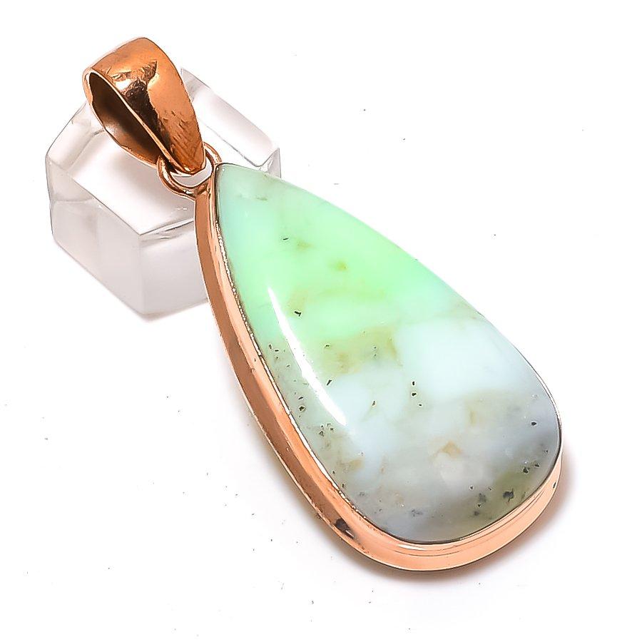 Chrysoprase Gemstone Copper Jewelry Pendant 2.36"