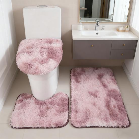 Украсьте декор вашей ванной комнаты этим впитывающим набором ковриков для ванной. В набор входят большой коврик для ванной, U-образный коврик и коврик для крышки унитаза, все изготовлены из прочного полиэстерового материала.
