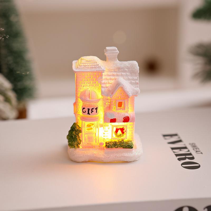 Рождественские украшения из смолы, небольшой домик, светящиеся фигурки в деревенском домике, мультяшное украшение для стола для праздничного подарка, милое рождество