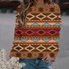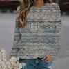 Весенне-осенний топ с круглым вырезом, 3D-принтом в этническом стиле, модная повседневная женская футболка с длинным рукавом