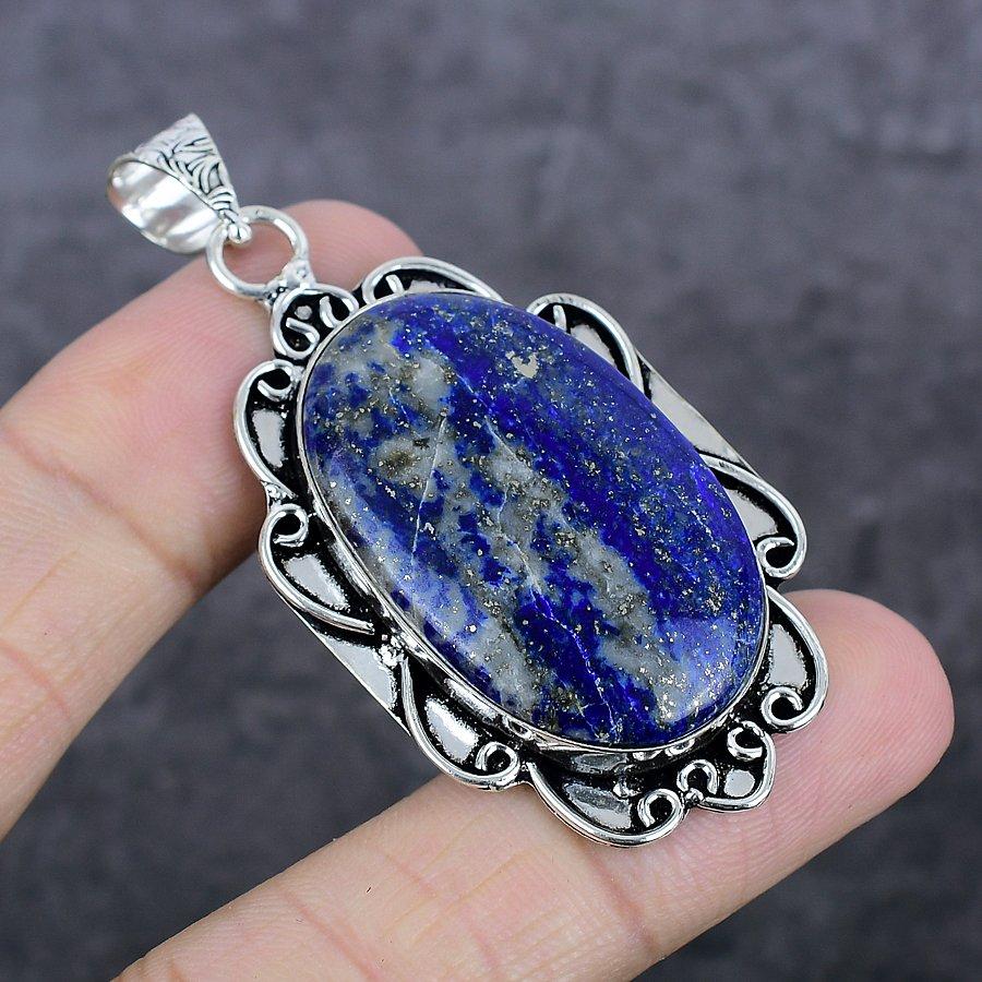 Lapis Lazuli Gemstone 925 Sterling Silver Jewelry Pendant 2.52"