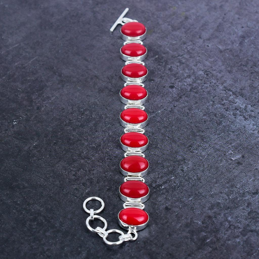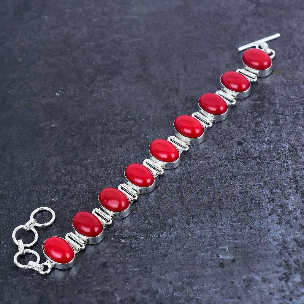Браслет из итальянского красного коралла из стерлингового серебра 925 пробы 7-8"