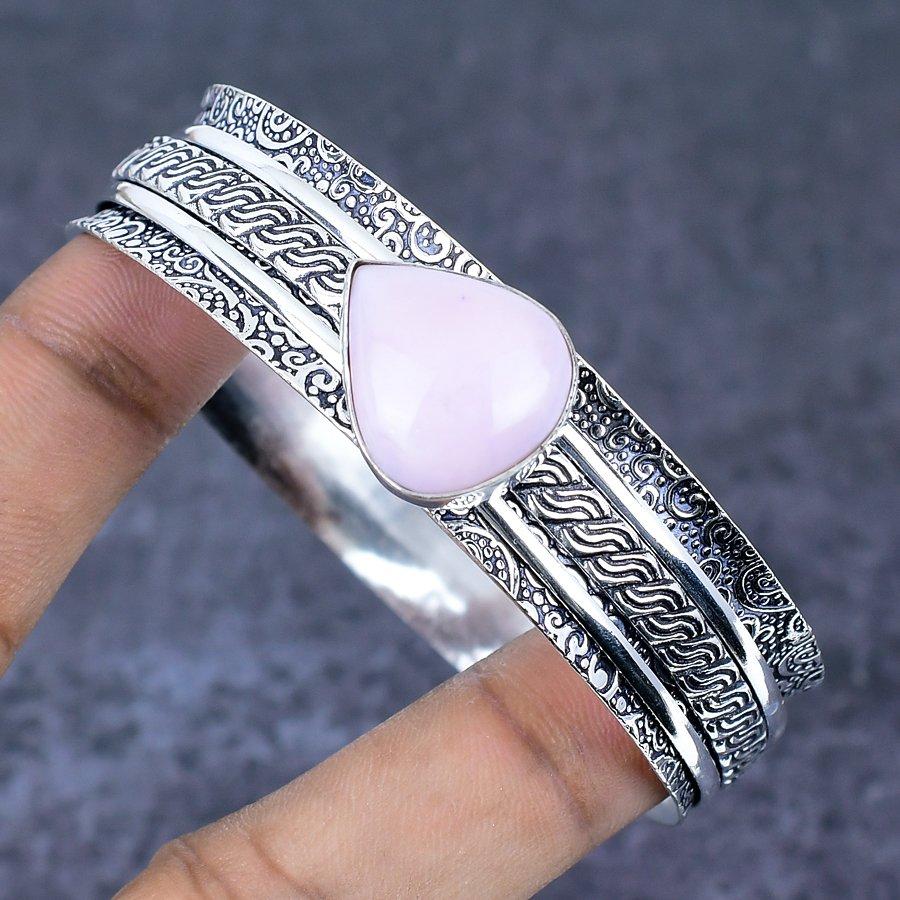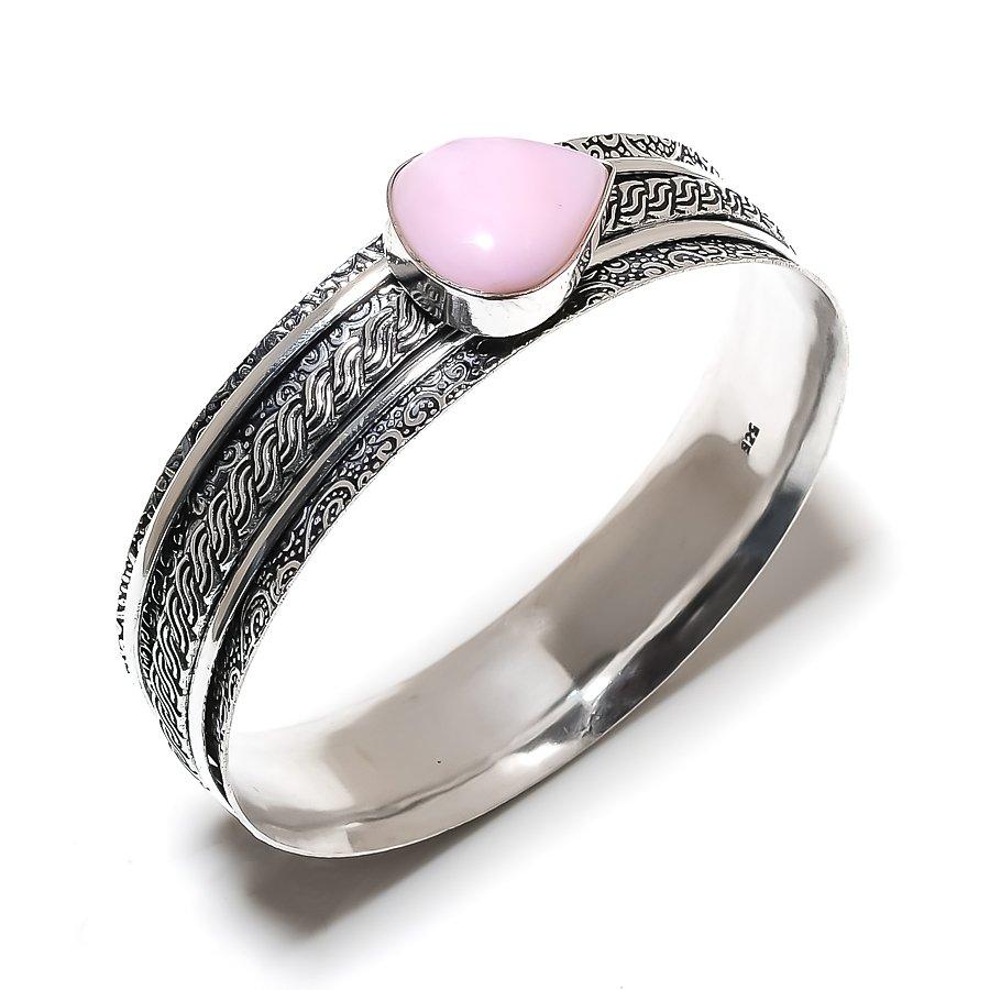 Розовый Опал Драгоценный Камень Серебро 925 Стерлинговое Серебро Манжета Браслет 7,5"