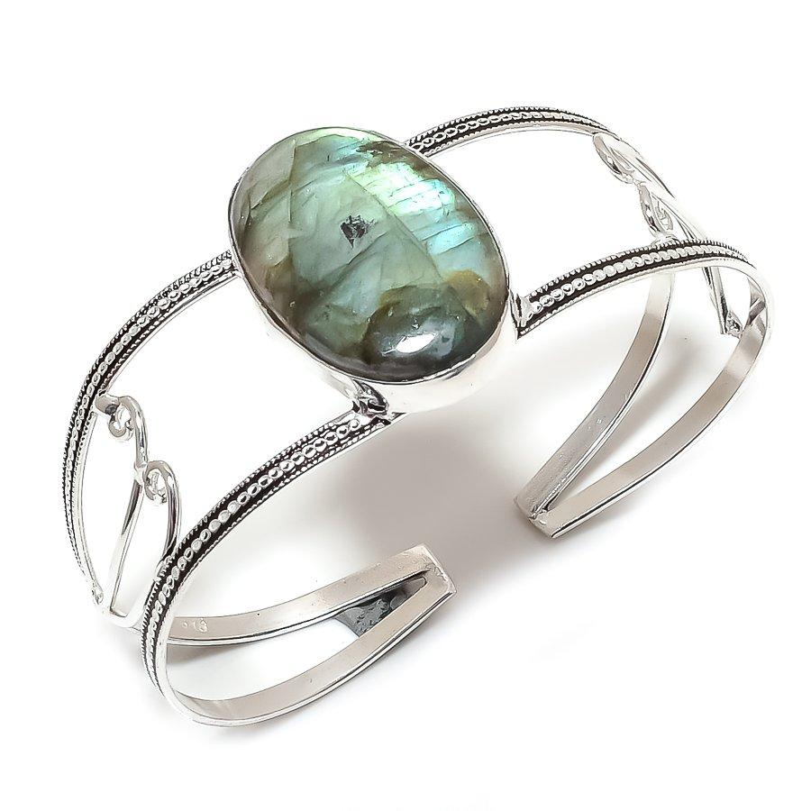 Лабрадорит Драгоценный Камень 925 Стерлинговое Серебро Манжета Браслет Регулируемый — купить товар онлайн с бесплатной доставкой по всему миру!