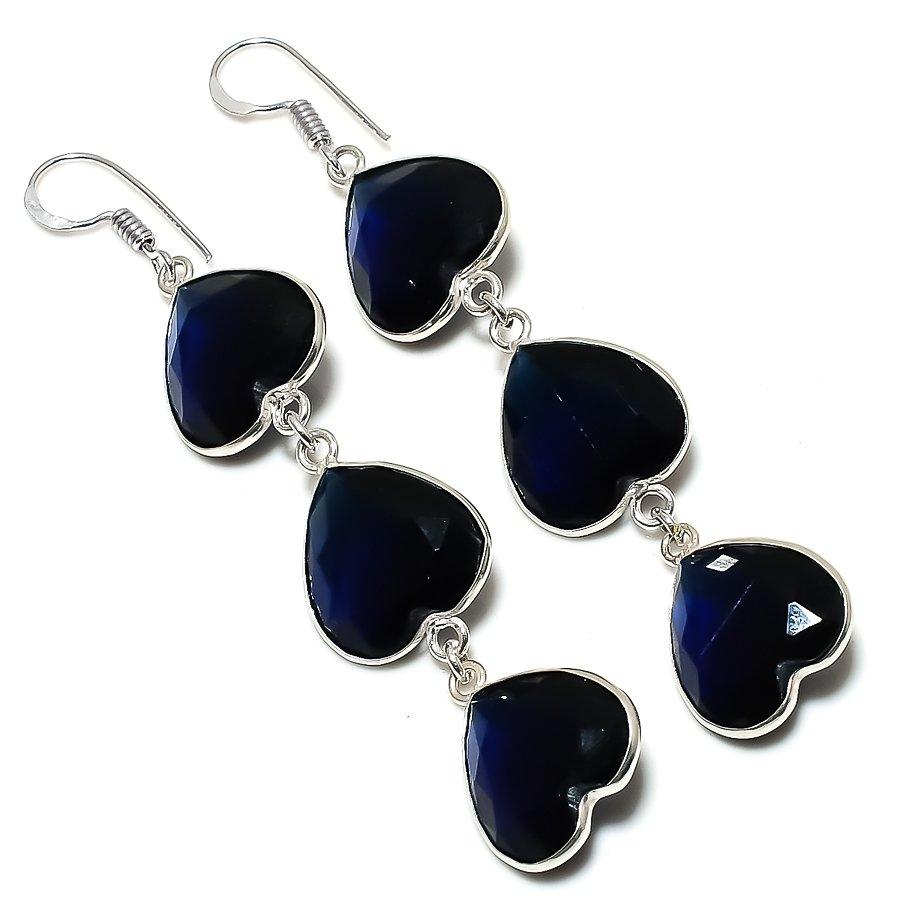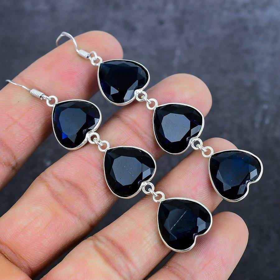 London Blue Topaz Gemstone 925 Sterling Silver Jewelry Earring 3.03"