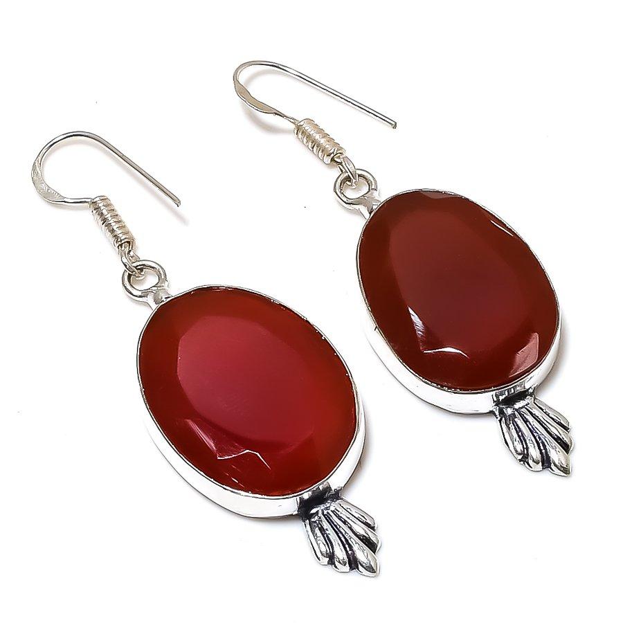 Красный сердолик драгоценный камень 925 стерлинговое серебро подарок ювелирное изделие серьга 2,25"
