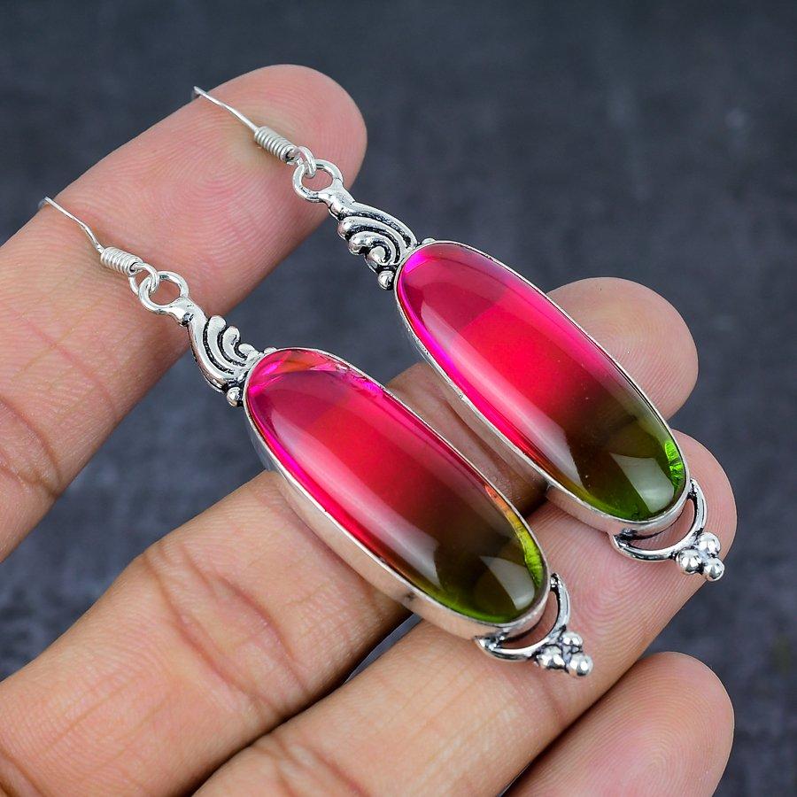 Двухцветный турмалин драгоценный камень 925 стерлинговое серебро ювелирное изделие серьга 2.88"
