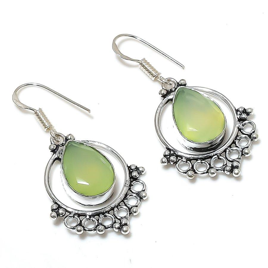 Зеленый Халцедон Драгоценный камень 925 Стерлинговое серебро Подарочное Ювелирное изделие Серьга 1,81"