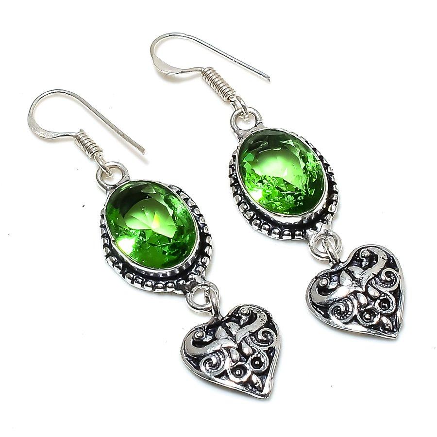 Хризолит Драгоценный Камень 925 Стерлинговое Серебро Подарок Ювелирные Изделия Серьга 2,29"