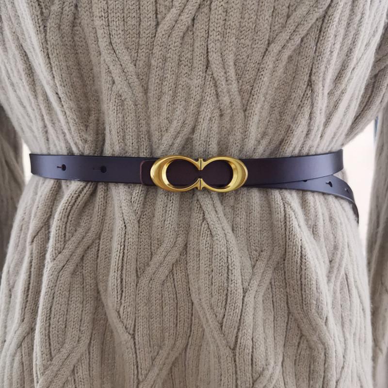 Кожаный тонкий женский пояс на талию с пряжкой-булавкой из сплава для модных повседневных нарядов
