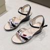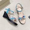 Сандалии летние новые женские сандалии женские на танкетке высоком каблуке с принтом с открытым носком с ремешком на щиколотке