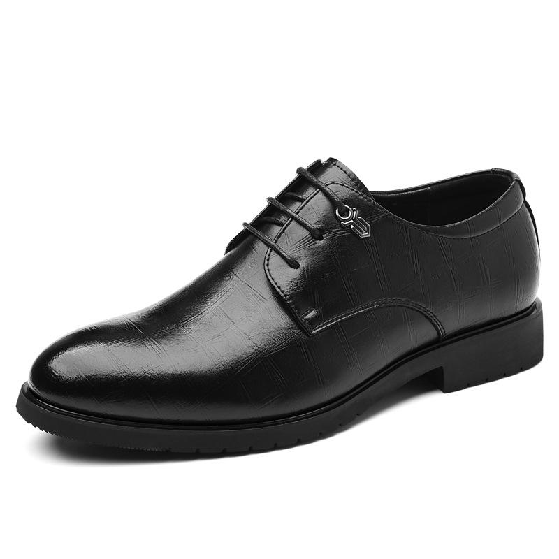 Кожаная обувь мужская деловая модельная кожаная обувь британская повседневная дышащая черная с увеличением внутренней высоты обувь жениха для свадьбы