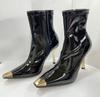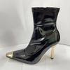 YX новые тонкие сапоги квадратный носок тонкий каблук боковая молния лакированная кожа но до колена женские железный носок высокий каблук короткие сапоги высокие сапоги — купить товар онлайн с бесплатной доставкой по всему миру!