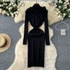 Весна Осень Женский Элегантный Вязаный Свитер со Стойкой Воротником Офисная Работа Длинные Миди Приталенные Платья-Футляры