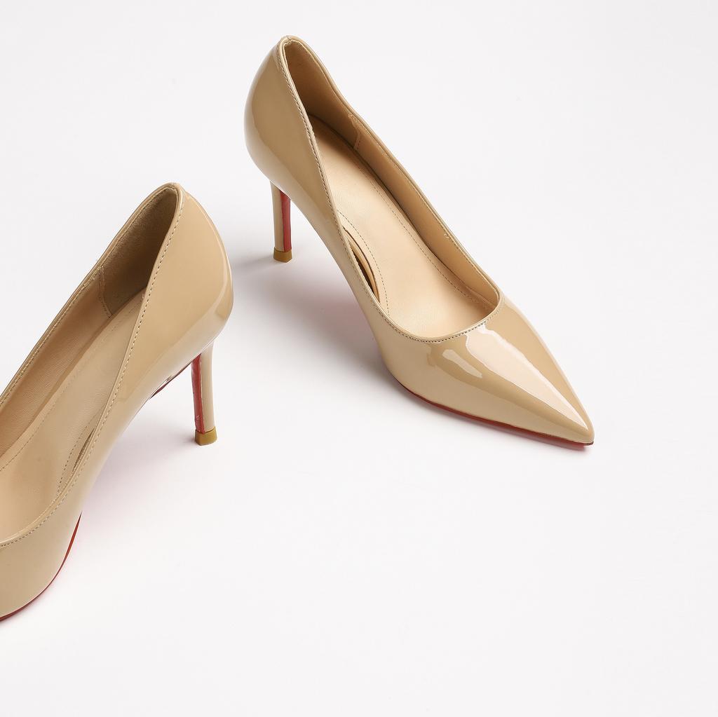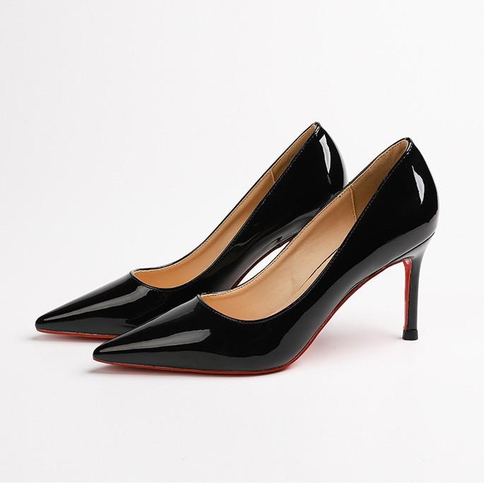 2025 лето сексуальный светлый рот острый носок тонкий каблук красная подошва туфли на высоком каблуке женские профессиональные для работы лакированная кожа дышащий однотонный грех