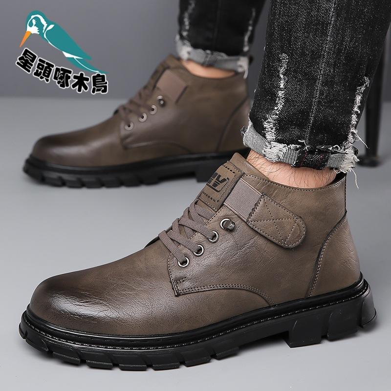 Мужские ботинки мартин 2025 новая зимняя бархатная утолщенная хлопковая обувь повседневный тренд высокие кожаные ботинки