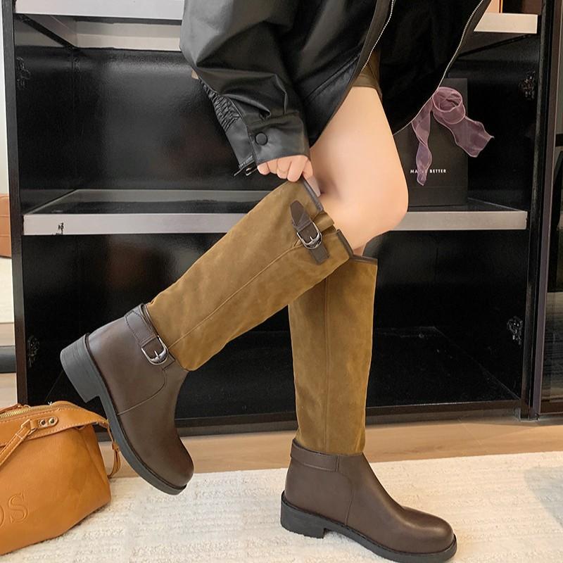 Французская ретро пряжка ремня длинные рыцарские сапоги для женщин 2025 новые нишевые сапоги большого размера в британском стиле