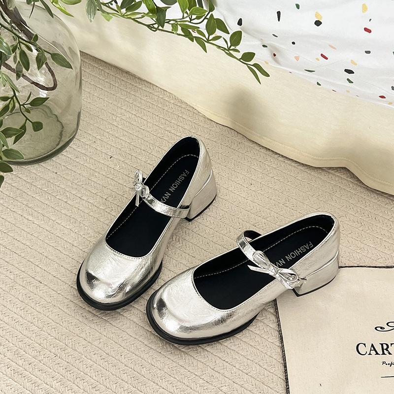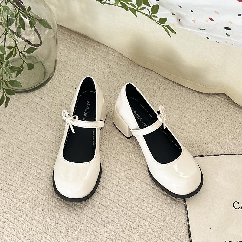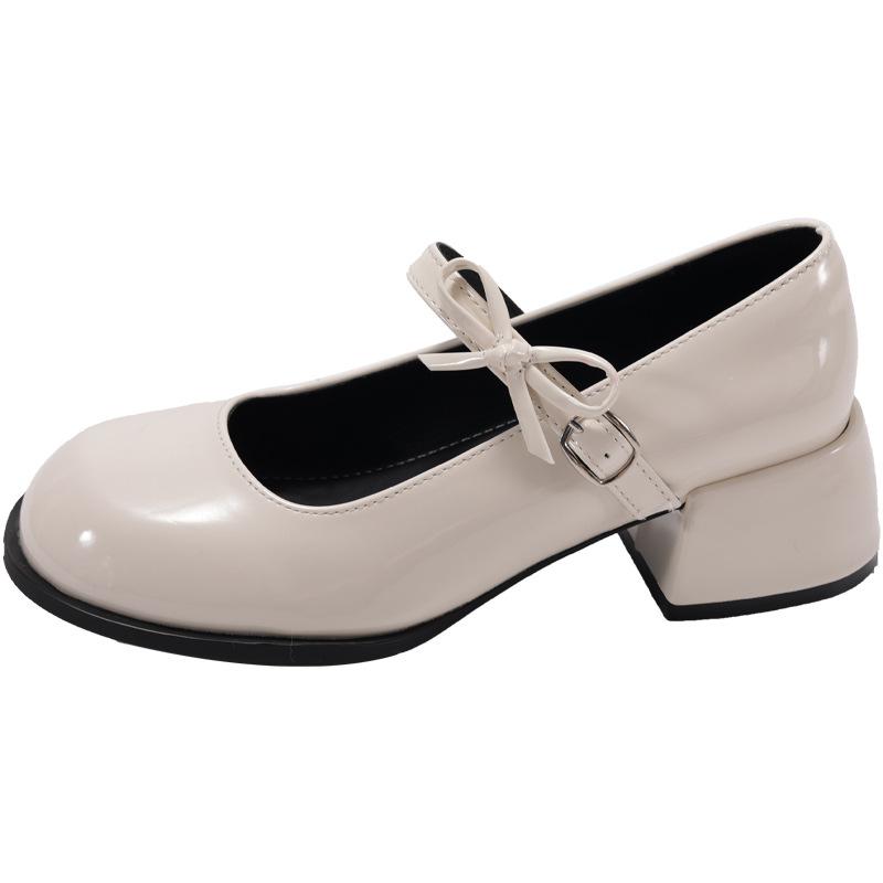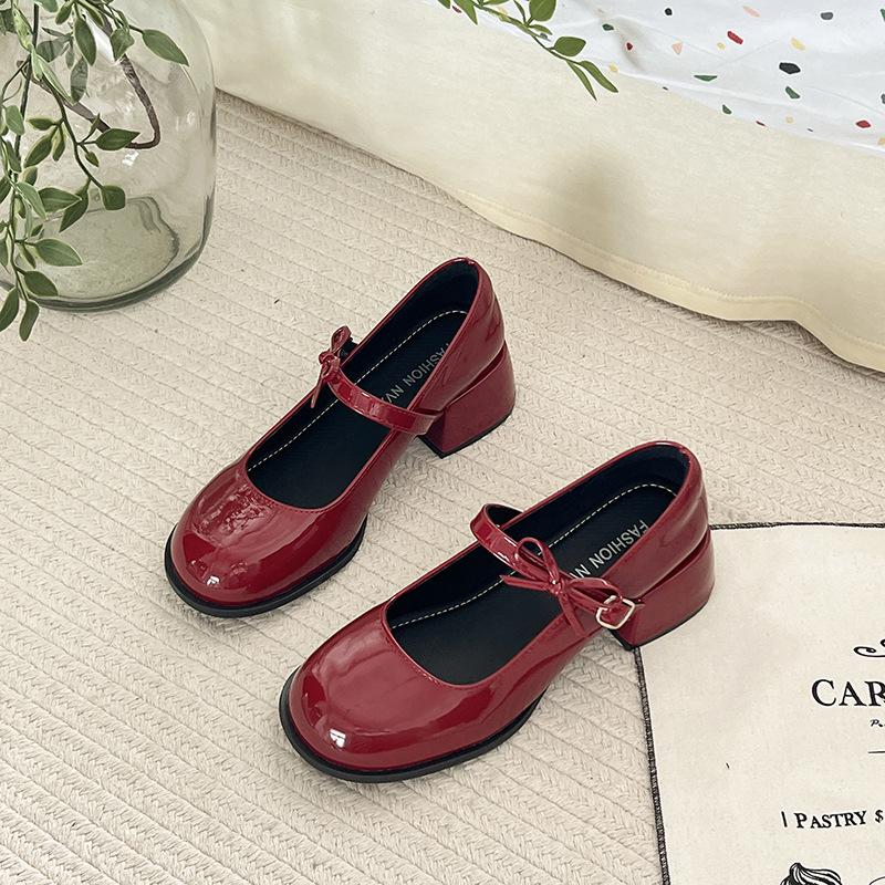 Французские красные туфли Мэри Джейн на толстом каблуке женские 2025 весна и лето новые ретро туфли на высоком каблуке с юбкой маленькие кожаные туфли