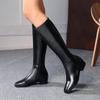 Зимние женские сапоги до колена с квадратным носком, белые, черные, на низком блочном каблуке, модные, для платья, для офисной леди, теплые, плюшевые, на молнии, длинные сапоги для верховой езды