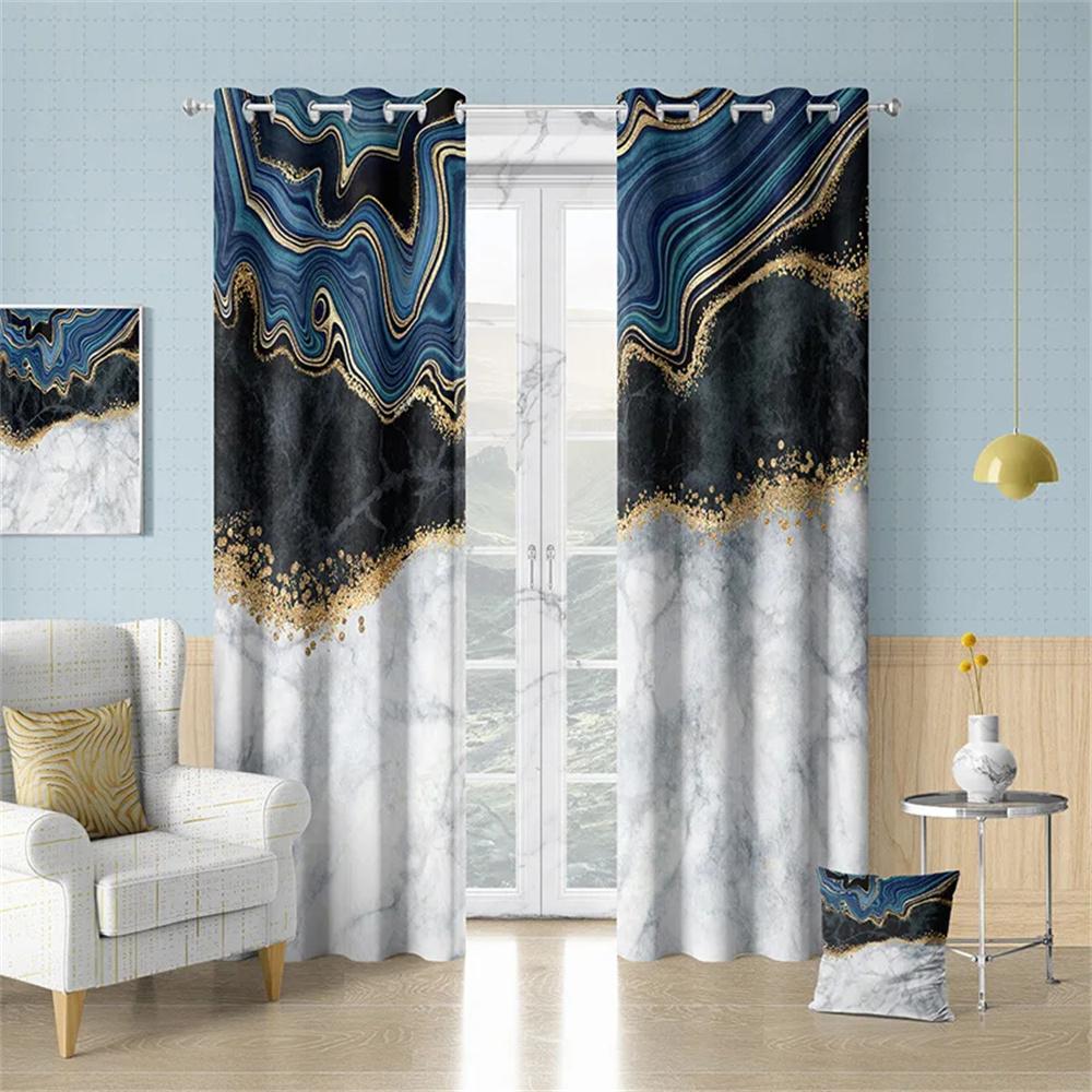 Каменный мраморный принт, роскошные золотые простые оконные шторы, жалюзи для гостиной, детской спальни, ванной комнаты, кухни, двери для домашнего декора, 2 шт.