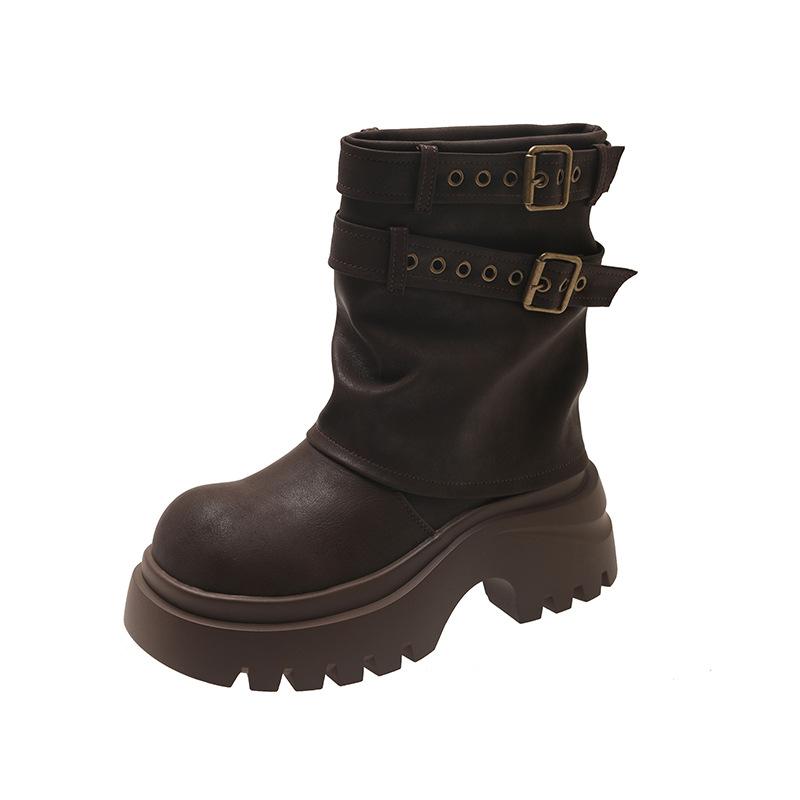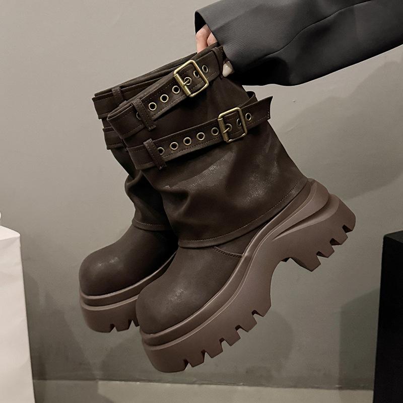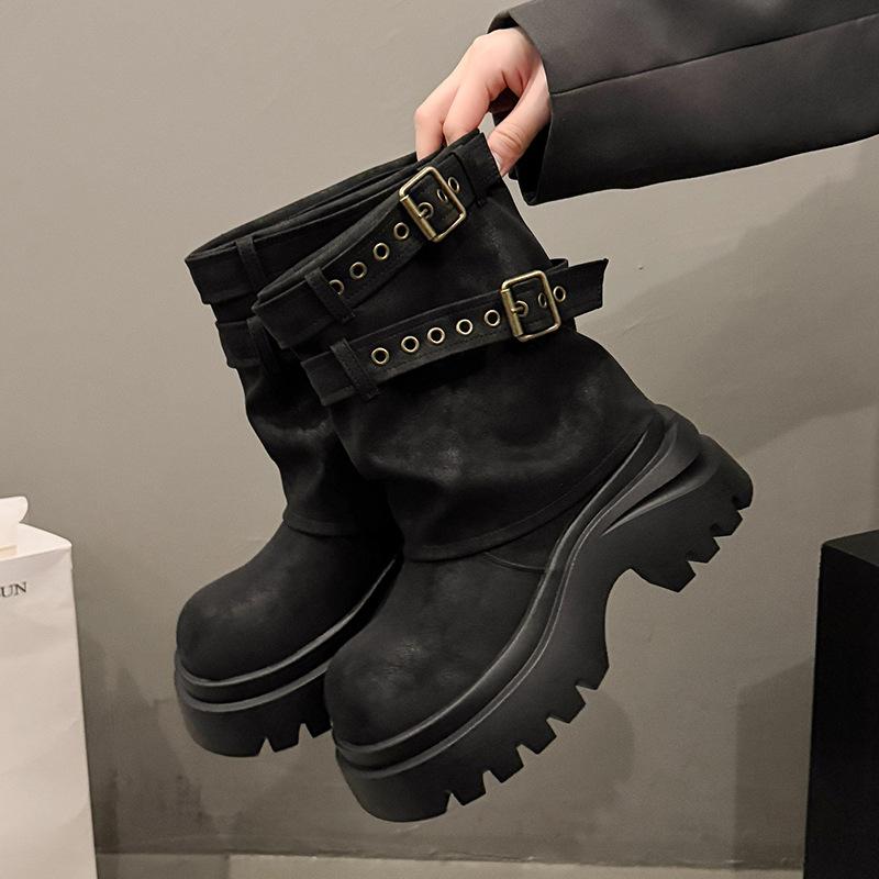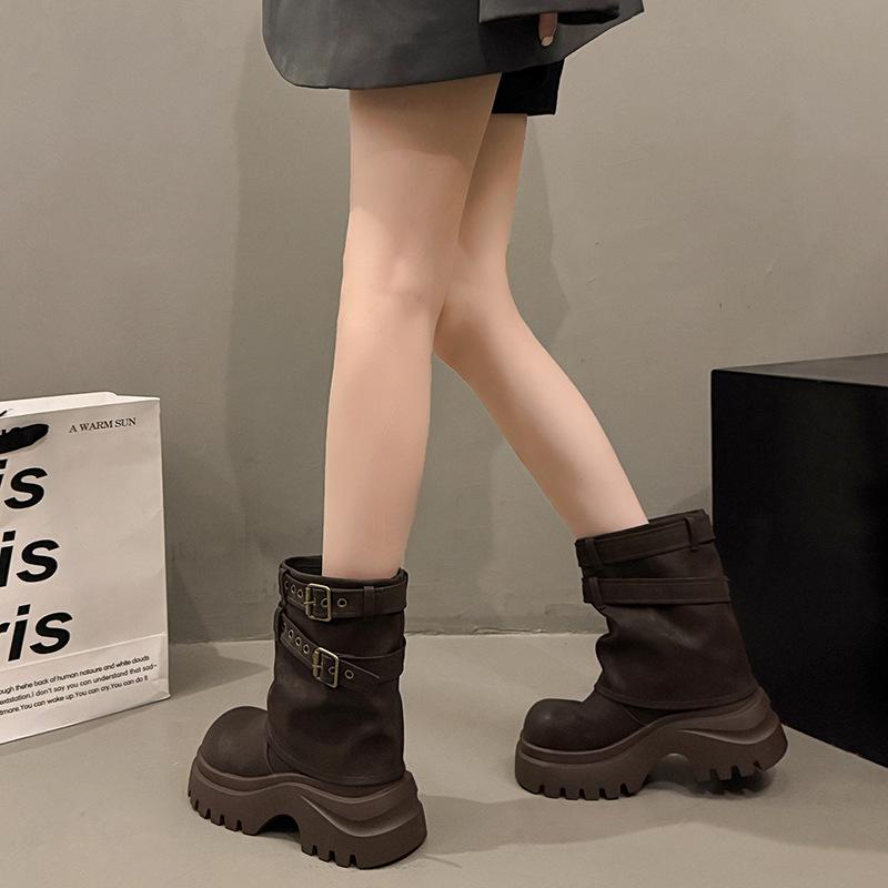 Maillard полусапоги ковбойские рыцарские женские 2025 осень новые на маленькой толстой подошве на платформе брюки ботинки Мартин