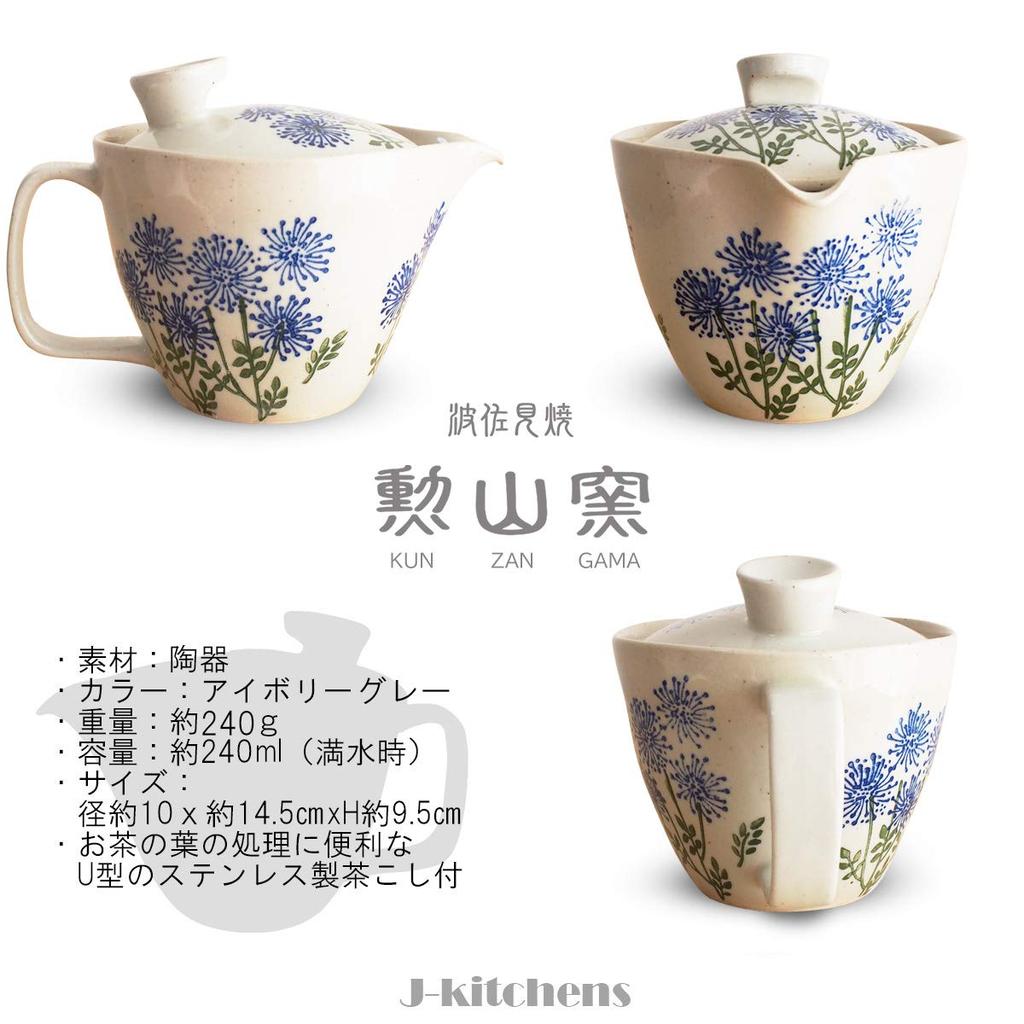 Чайник 240 мл для Хасами Сделано в дизайне «Полевые цветы синие» J-kitchens Кунзан-яки Ситечко, Вместимость, 1-2 человека, Фаянс, Япония,