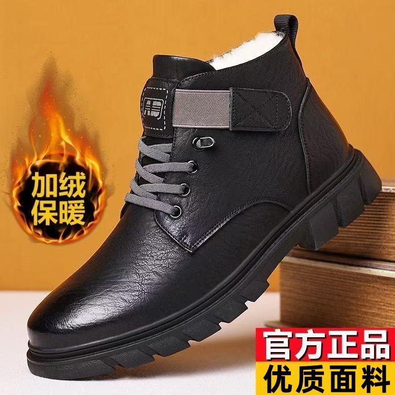 Зимняя мужская обувь флисовые утепленные теплые хлопковые ботинки высокие хлопковые кожаные ботинки для среднего и пожилого возраста уличные зимние ботинки ботинки Мартин мужские