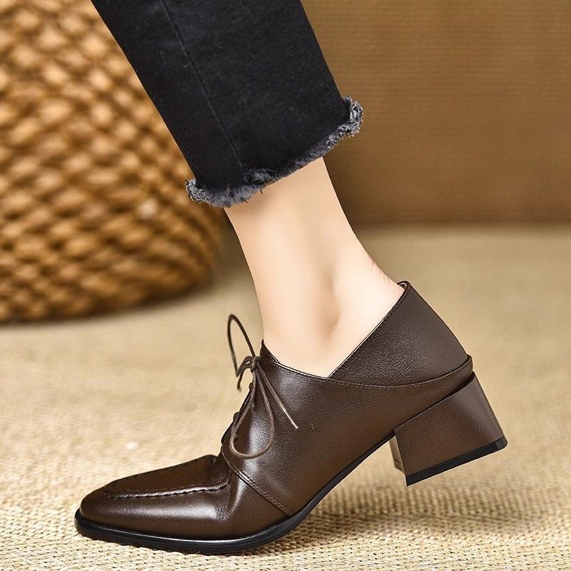 4,5 см коричневые туфли-оксфорды с глубоким вырезом, женский топ, французский ретро, мягкая кожа, квадратный носок, толстый каблук, высокие каблуки