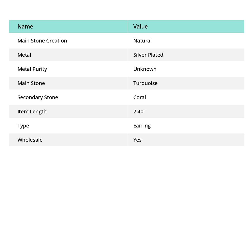 Натуральная тибетская бирюза, коралловый драгоценный камень, ручная работа, серьги 2,40" e8j63