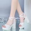 Корейская версия женских босоножек на толстом каблуке 2025 новая летняя сексуальная обувь с открытым носком на высоком каблуке платформа водонепроницаемая трендовая универсальная женская обувь