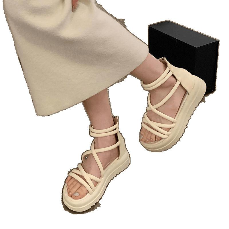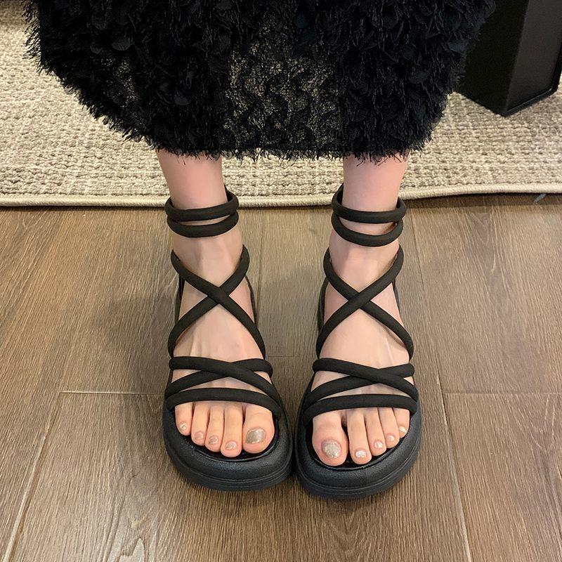 Босоножки студентка 2025 лето новая мода универсальный дизайн нишевый темперамент маффин платформа римские сандалии