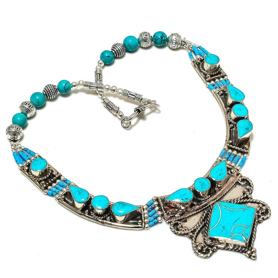 Натуральный тибетский бирюзовый драгоценный камень ручной работы ювелирное изделие ожерелье 18" W0T15 — купить товар онлайн с бесплатной доставкой до всему миру!