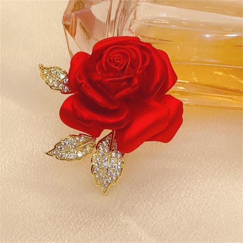 Темперамент Красная роза Брошь Высококачественные аксессуары для костюмов Булавки Дизайн Броши