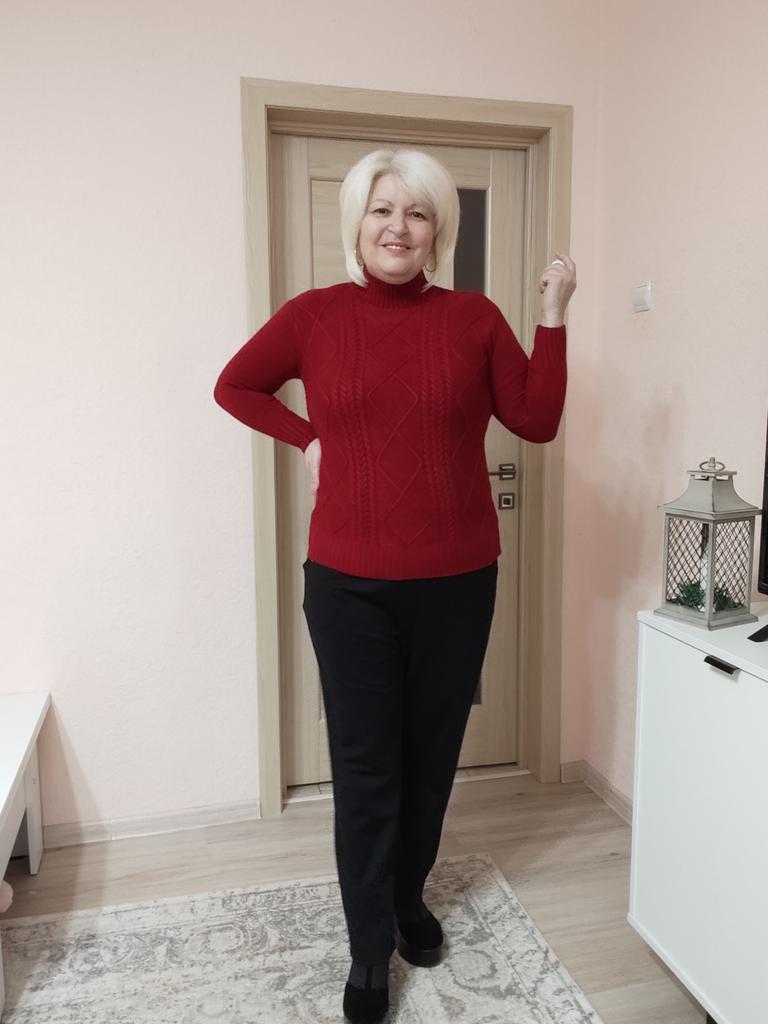 Яркий свитер ❤️ Я просто в восторге от этого свитера! Он стал моей любимой вещью для холодов. Цвет - это первое, что бросается в глаза. Яркий, сочный оттенок, который моментально поднимает настроение и отлично смотрится. Отдельный плюс - это вязка, которая придает свитеру очень дорогой и стильный вид, не как у обычной водолазки. Сидит свитер просто идеально. Он приталенный, хорошо подчеркивает силуэт, но при этом нигде не обтягивает и не сковывает движения. Воротник-стойка достаточно высокий, чтобы защитить от ветра, но при этом он мягкий и не давит, что для меня очень важно. Материал на ощупь очень нежный и мягкий, совсем не колется. На мои параметры: ОГ - 90 см, ОТ - 63 см, ОБ - 93 см, Рост - 162 см выбрала размер XL, сел отлично. Цвет можно выбрать по своему вкусу. Смело рекомендую 👍 Удачных покупок ❤️ Ваша Вика 😊