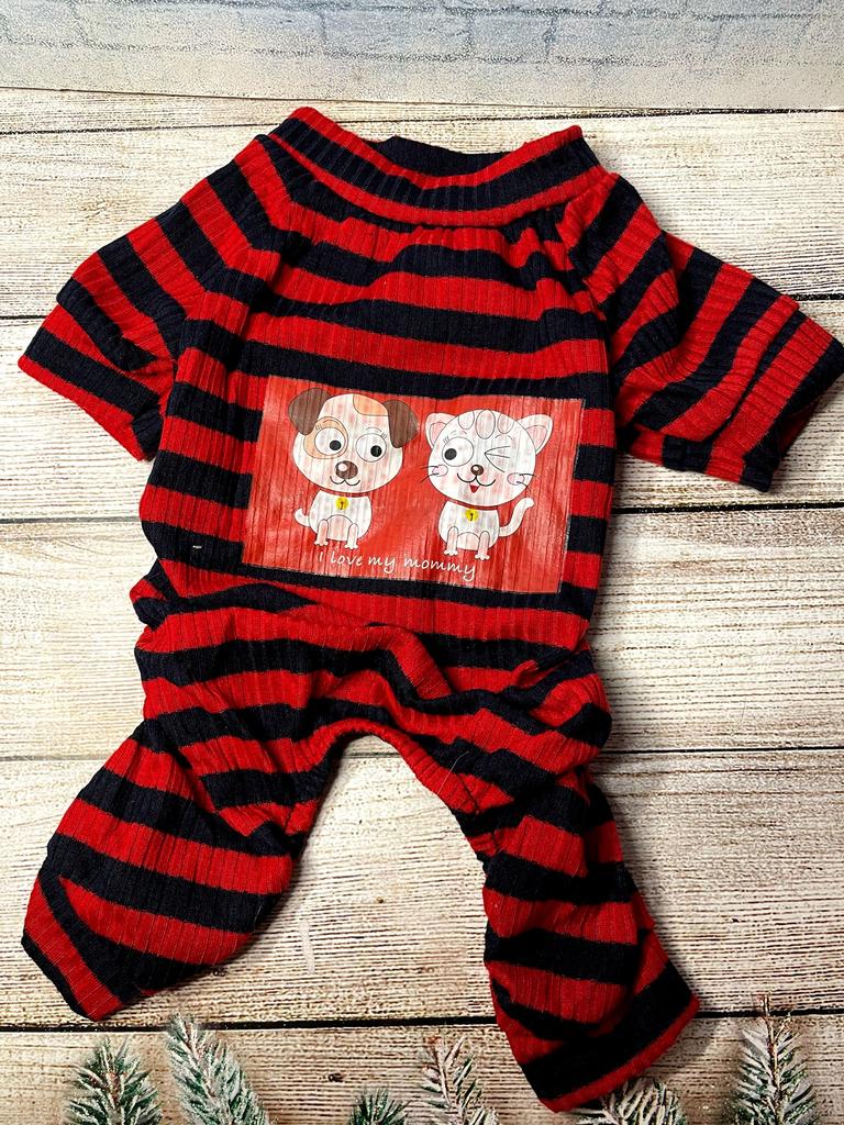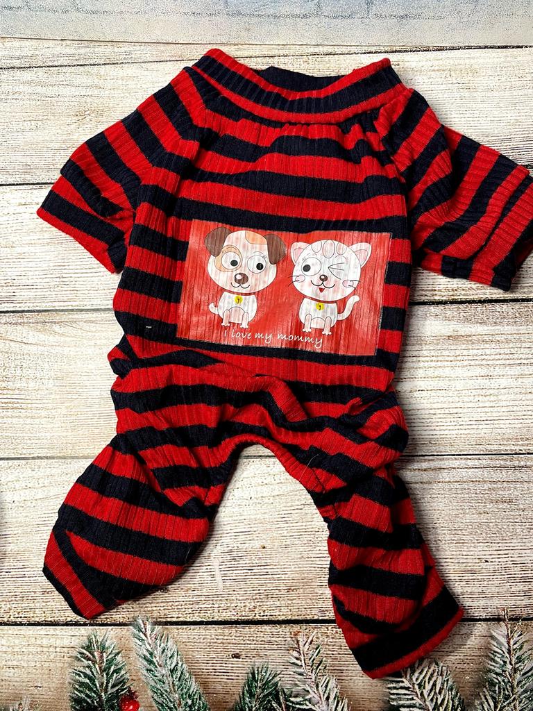 🐾Комбинезон для питомца Продукт: Комбинезон, предназначенный для защиты, тепла или послеоперационного ухода. Дизайн: * Цвет: Контрастная красно-черная горизонтальная полоска (тельняшка). * Материал: Тонкий трикотаж в рубчик (ластик), который хорошо тянется. * Крой: Слитный, с четырьмя отверстиями для лап, закрывает тело животного. Детали: На вставке видно небольшой декоративный принт на спине. Практичная и милая одежда, обеспечивающая комфорт и защиту. Рекомендую 👍 Ставлю ⭐ ⭐ ⭐ ⭐ ⭐ Спасибо продавцу ❤️ и Joom ❤️