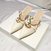 Лакированная кожа металлическая буква сумка голова полушлепанцы женская обувь на высоком каблуке лето новый тонкий каблук заостренный модный vs