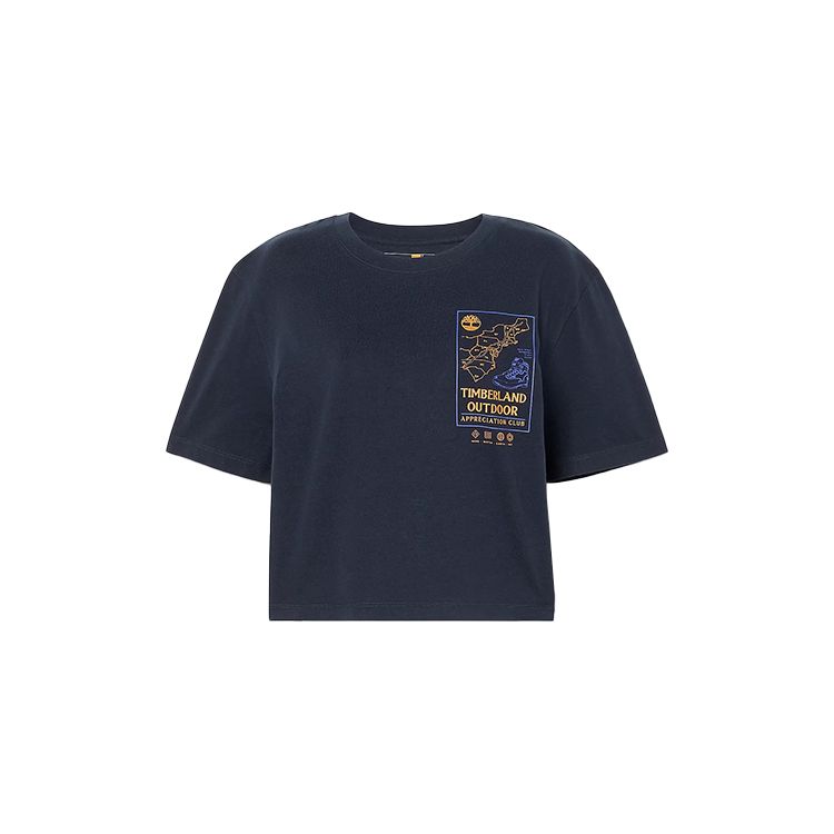Timberland Футболка с коротким рукавом и круглым вырезом с буквенным принтом, женские топы, темно-синие, A6HRD-433