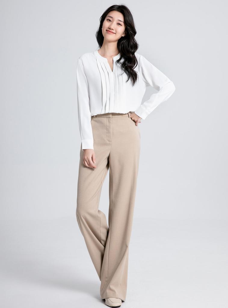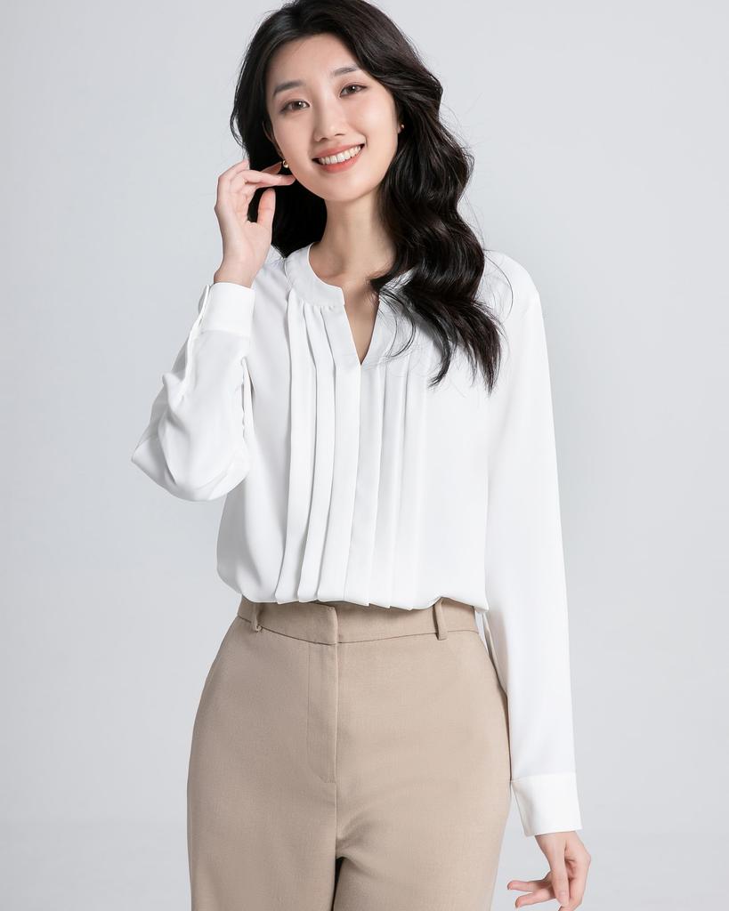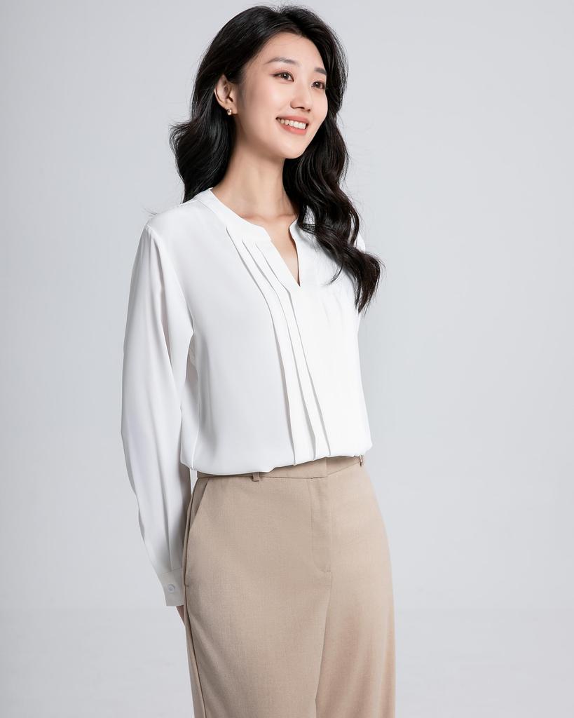 ВЕСЕННИЙ СЕЗОН Шифоновая блузка с длинным рукавом, со складками, свободного кроя, больших размеров, подходит для размера L, женская блузка с V-образным вырезом, посадка, в наличии, костюмы, офис, бизнес, для поездок,