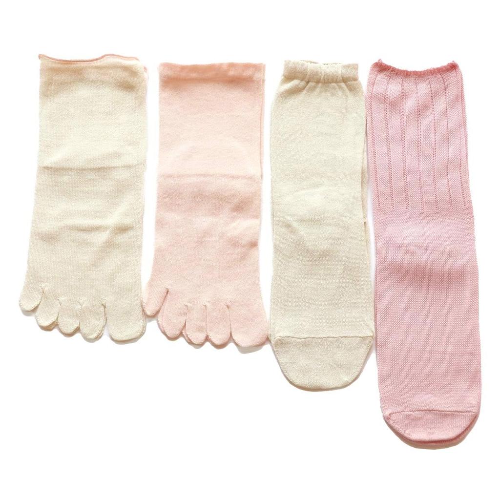 Kinuya Многослойные шелковые и хлопковые носки с вишневым узором, размеры, шелк и сделано в Японии, 4 пары, цветущий, женские, 22,5 см-24,5 см, SO4758, носки для облегчения холода,