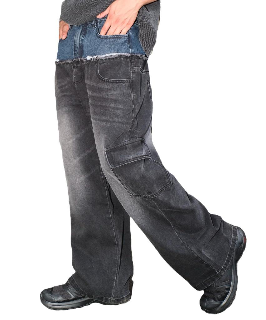 WEGO Джинсы карго с двойной талией винтажные размер джинсовый черный соната мужские брюки, брюки, низ, уличная одежда, одежда, лето/осень, подарок, M,
