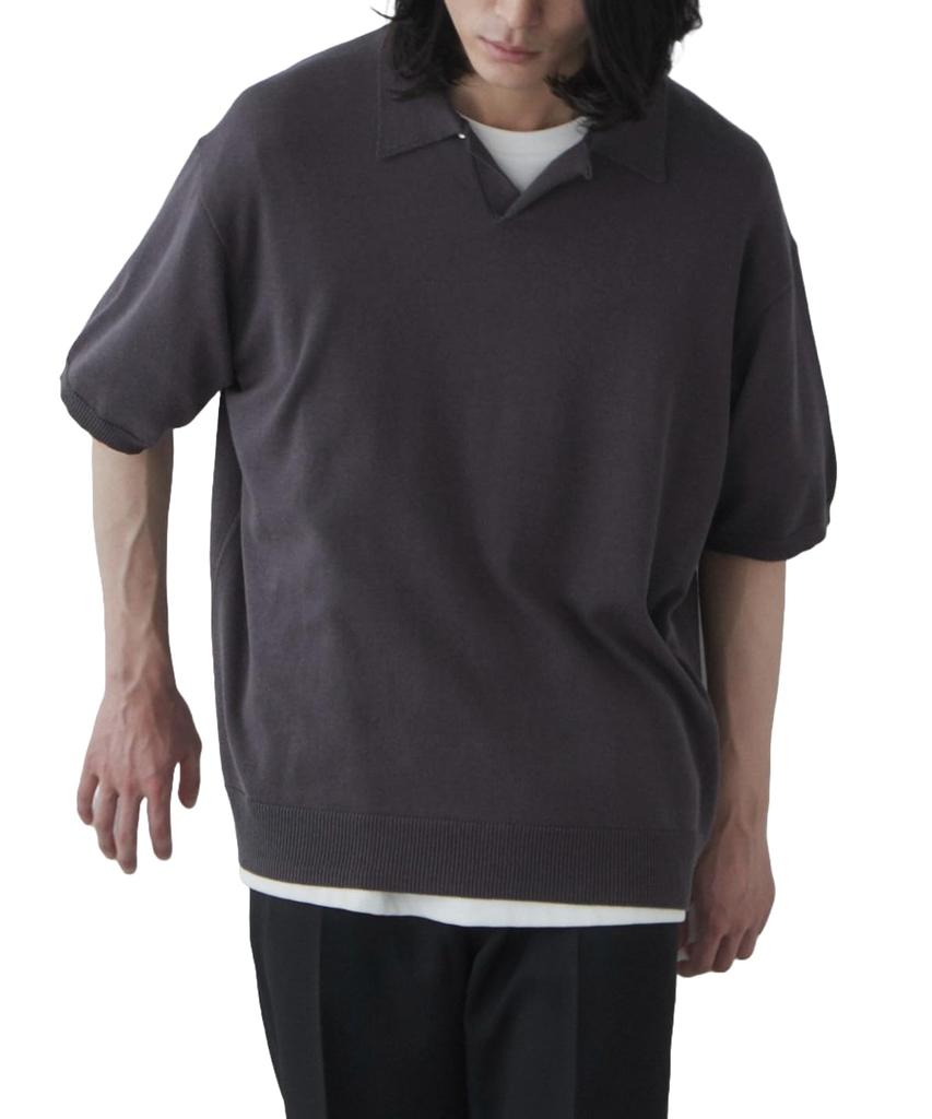 WEGO Skipper Short Summer Knit Loose Oversized Korean Size Dark Gray Men's Shirt, Sleeve, Top, T-Shirt, Clothes, Polo, Simple, Fit, Silhouette, — купить товар онлайн с бесплатной доставкой до всему миру!