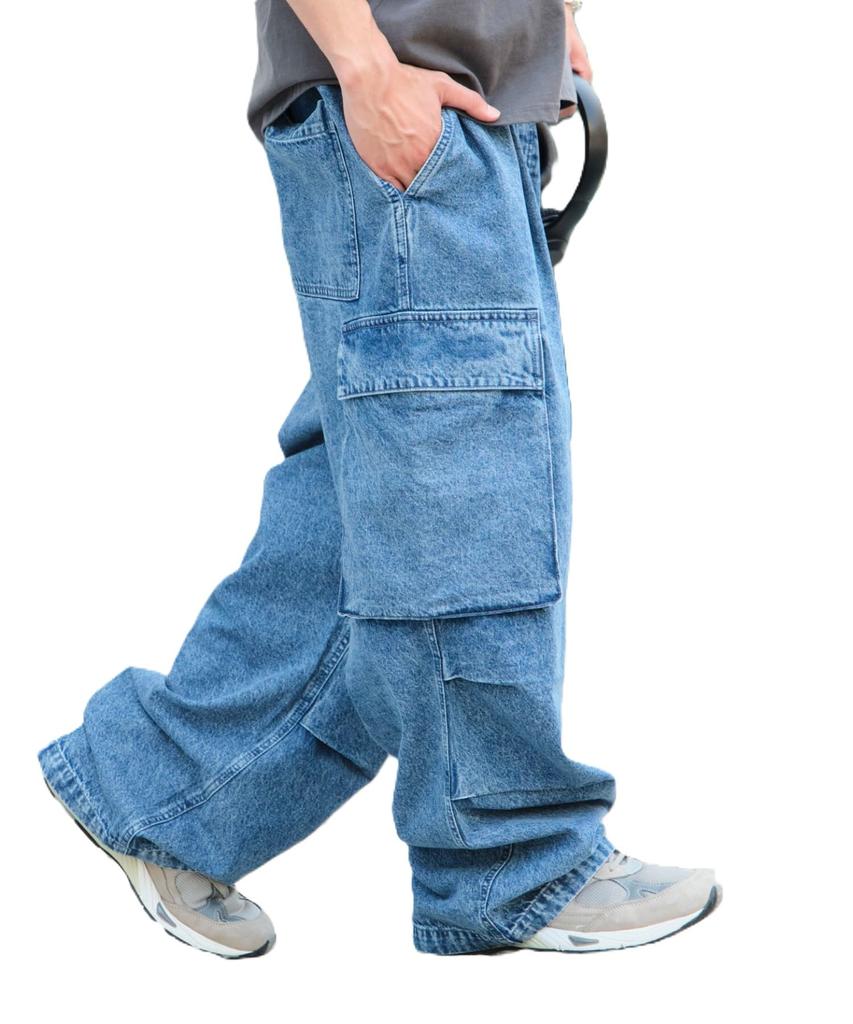 WEGO Деним Легкие Карго Размер Светлый Деним Отделка Мужские Брюки, L,