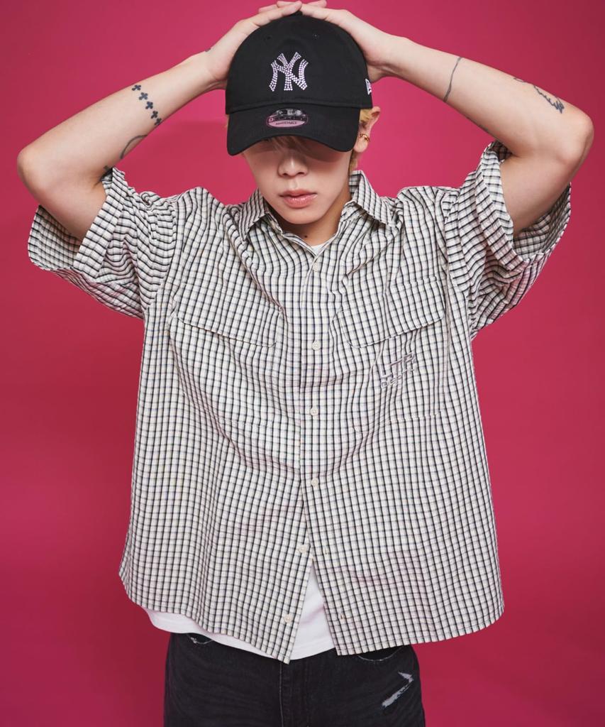 WEGO Short Sleeve Minimalist Check Logo Summer Size White Check 1 Men's Shirt, Shirt, Top, Streetwear, Casual, M,