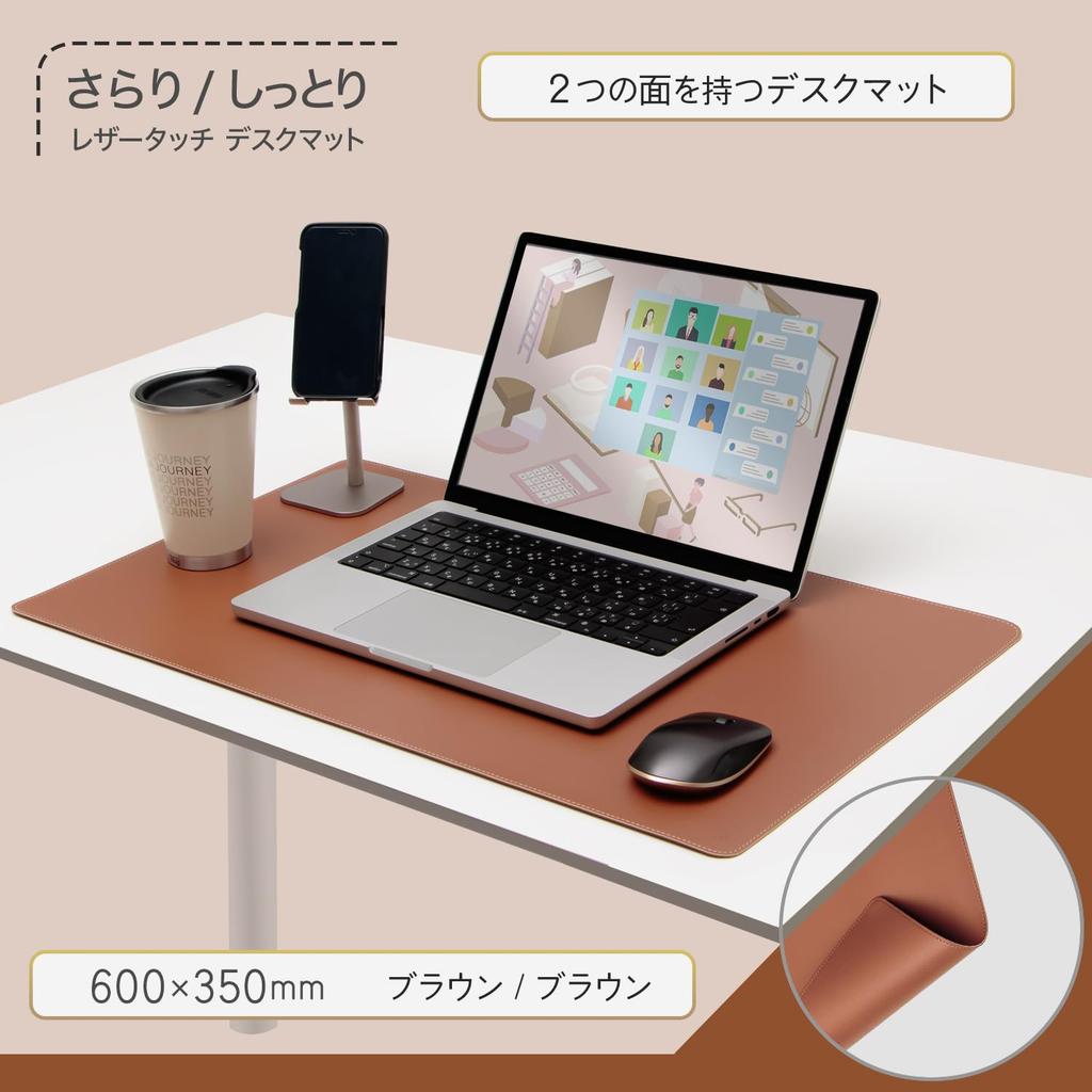 Plus Реверсивный коврик для мыши на стол, Синтетический коврик для мыши, Совместимый, Двусторонний, Гладкая/Мягкая поверхность с ощущением кожи, Кожа, 600x350 мм, Коричневый, DM-001LT, 36-775