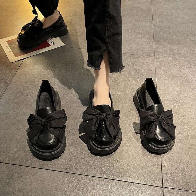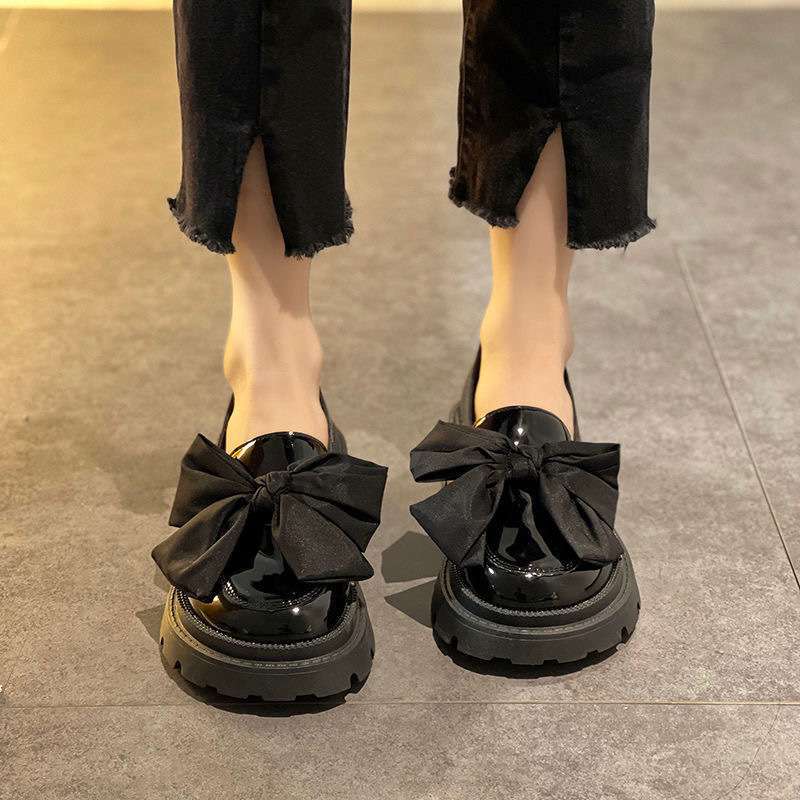 Черные лоферы женские новые летние нишевые с бантом на платформе в британском стиле маленькие кожаные туфли ретро туфли одинарные туфли женская обувь