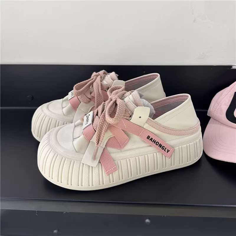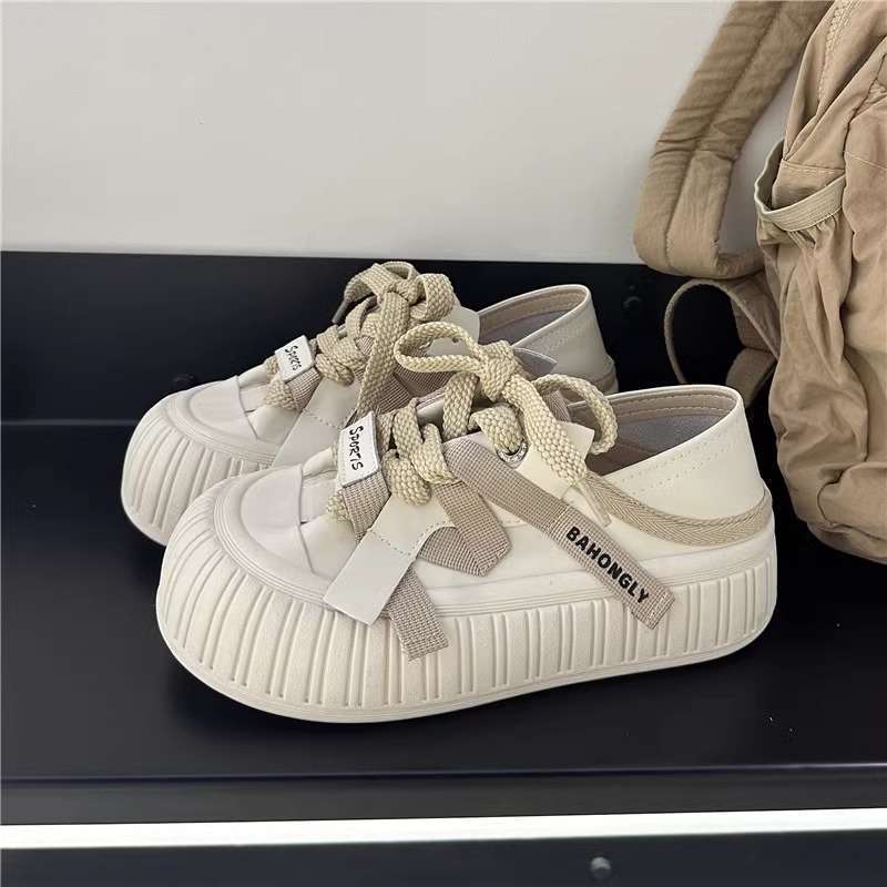 Корейская версия осенних маленьких белых туфель женские новые удобные туфли-платформа-печенье, женские туфли-хлеб, повседневные универсальные туфли с большим носком, модный бренд