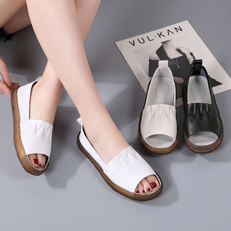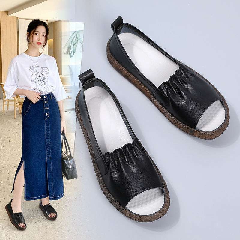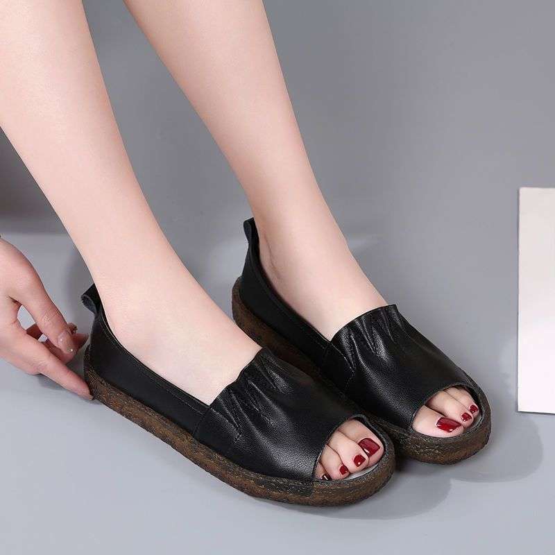 Туфли с рыбьим носком, сандалии на подошве из говяжьей кожи, женские летние новые шлепанцы с открытым носком и ремешком на каблуке, обувь для женщин с широкой стопой, медсестер, беременных