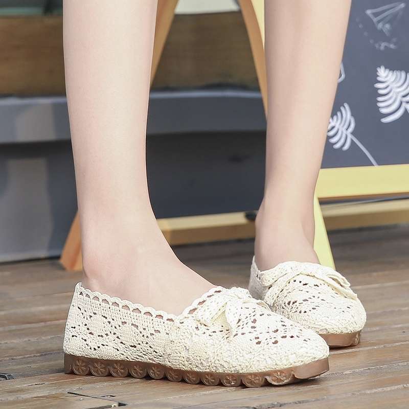Летние туфли из ткани с бантом женские дышащие кружевные ажурные туфли на мягкой подошве туфли-бини на плоской подошве туфли для беременных вечерние нежные туфли
